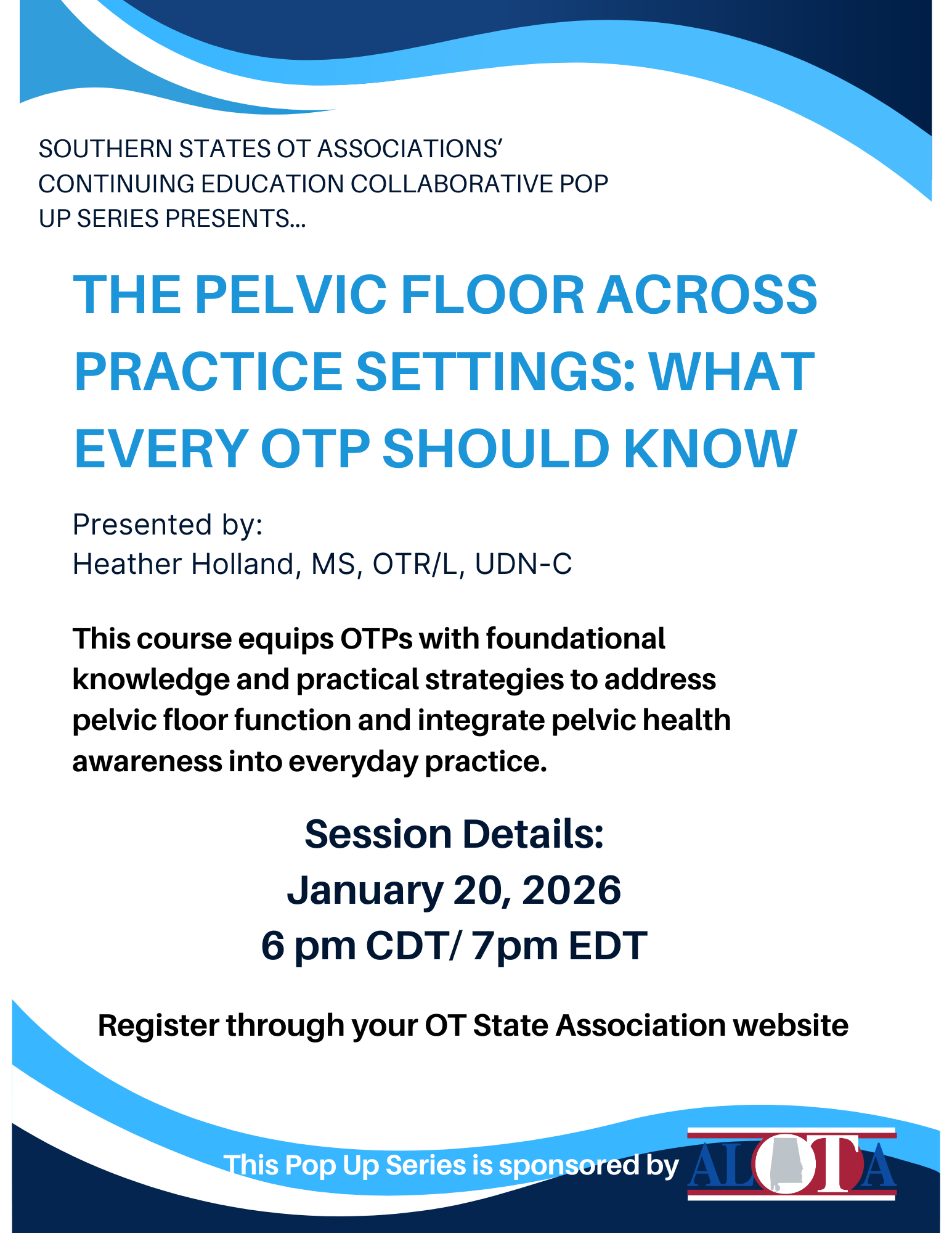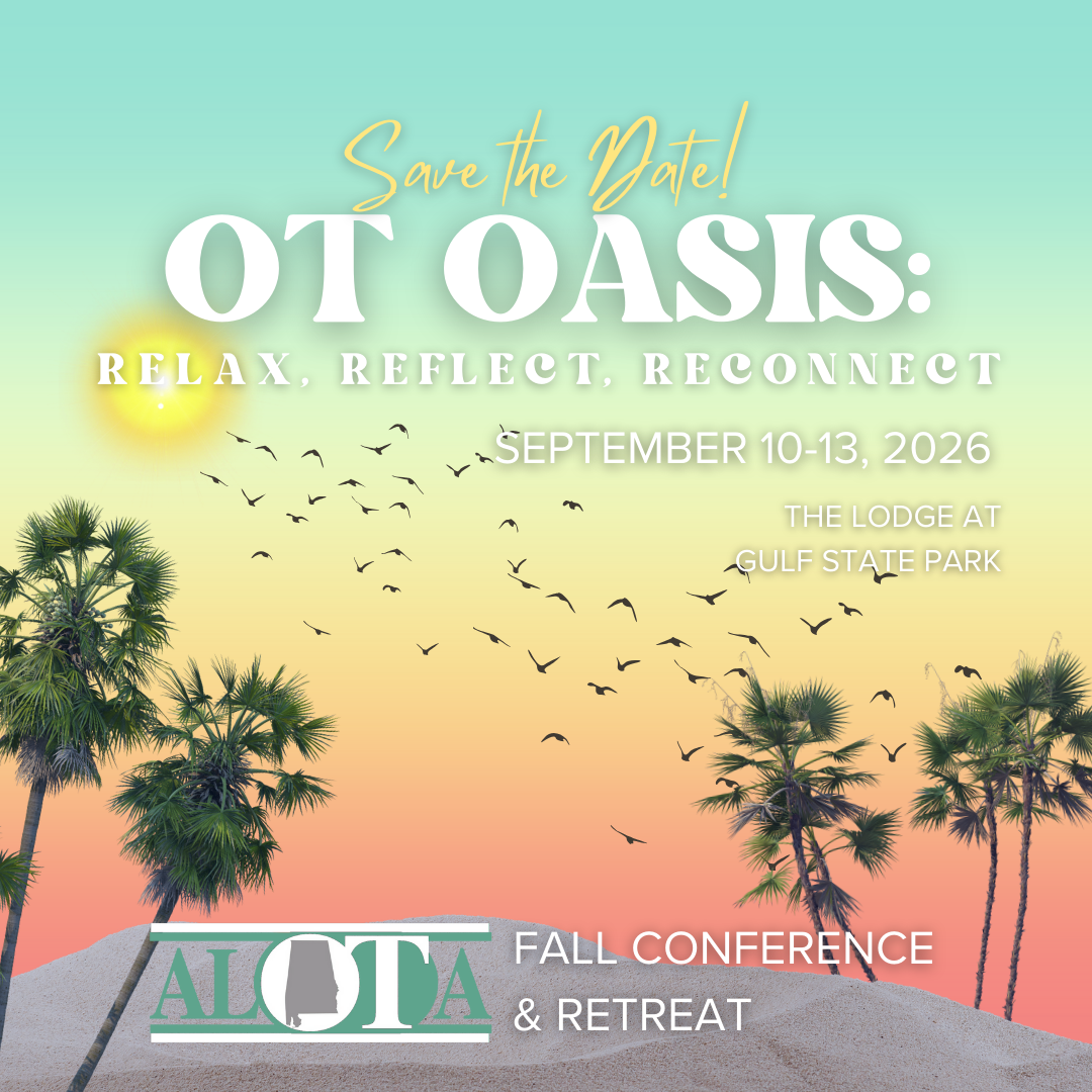 Welcome to ALOTA!The Alabama Occupational Therapy Association (ALOTA) is a member organization. ALOTA is the state-based professional organization and public voice for the occupational therapy profession within Alabama. Members consist of occupational therapists, occupational therapy assistants, occupational therapy students, and corporate sponsors who employ occupational therapy personnel. ALOTA is a state affiliate of the American Occupational Therapy Association (AOTA), which is the national professional association. ALOTA and AOTA share the common goals of working to advance the profession of occupational therapy, the public’s awareness of and access to needed occupational therapy services, and the contributions of occupational therapy to health, wellness, productivity and quality of life.