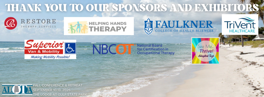 Welcome to ALOTA!The Alabama Occupational Therapy Association (ALOTA) is a member organization. ALOTA is the state-based professional organization and public voice for the occupational therapy profession within Alabama. Members consist of occupational therapists, occupational therapy assistants, occupational therapy students, and corporate sponsors who employ occupational therapy personnel. ALOTA is a state affiliate of the American Occupational Therapy Association (AOTA), which is the national professional association. ALOTA and AOTA share the common goals of working to advance the profession of occupational therapy, the public’s awareness of and access to needed occupational therapy services, and the contributions of occupational therapy to health, wellness, productivity and quality of life.